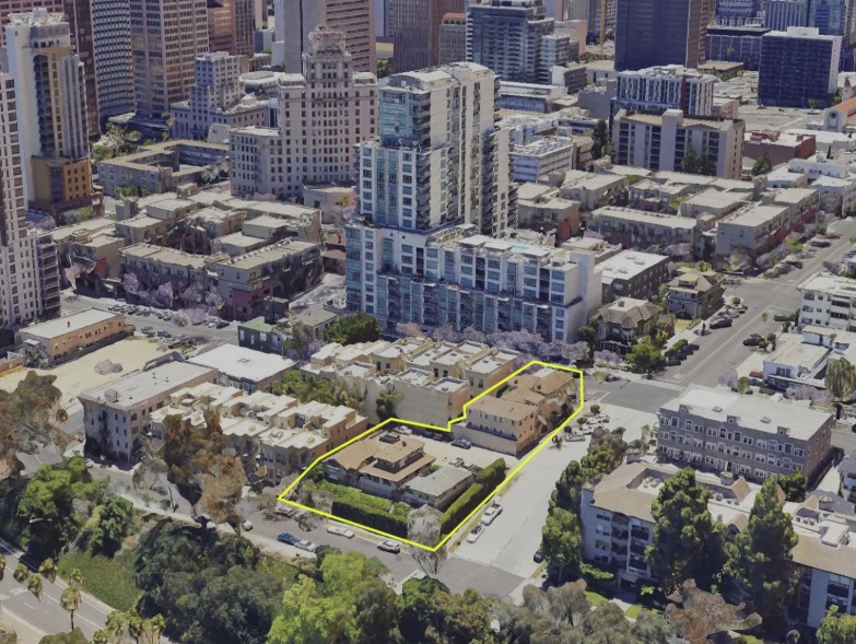 These vintage buildings generate current rental income, offering investors a true covered land play with immediate cash flow while providing entitlements and planning for future redevelopment. The property’s location at the top of Cortez Hill offers a rare elevated infill site with views and neighborhood character, while also being just blocks from Downtown’s Central Business District, San Diego’s major employment hub. It provides easy regional access via Interstate 5, State Route 163, and State Route 94, and is within walking distance to Balboa Park and the San Diego Zoo.